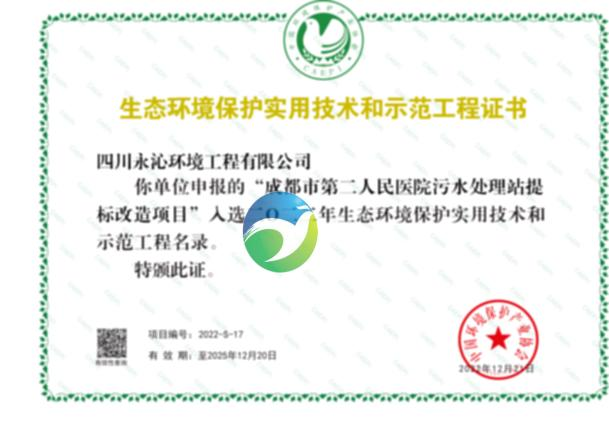 2022年度四川省仅我公司入选重点环境保护实用技术和示范工程。截止目前,我司技术装备6次入选中环协重点环境保护实用技术和示范工程。
