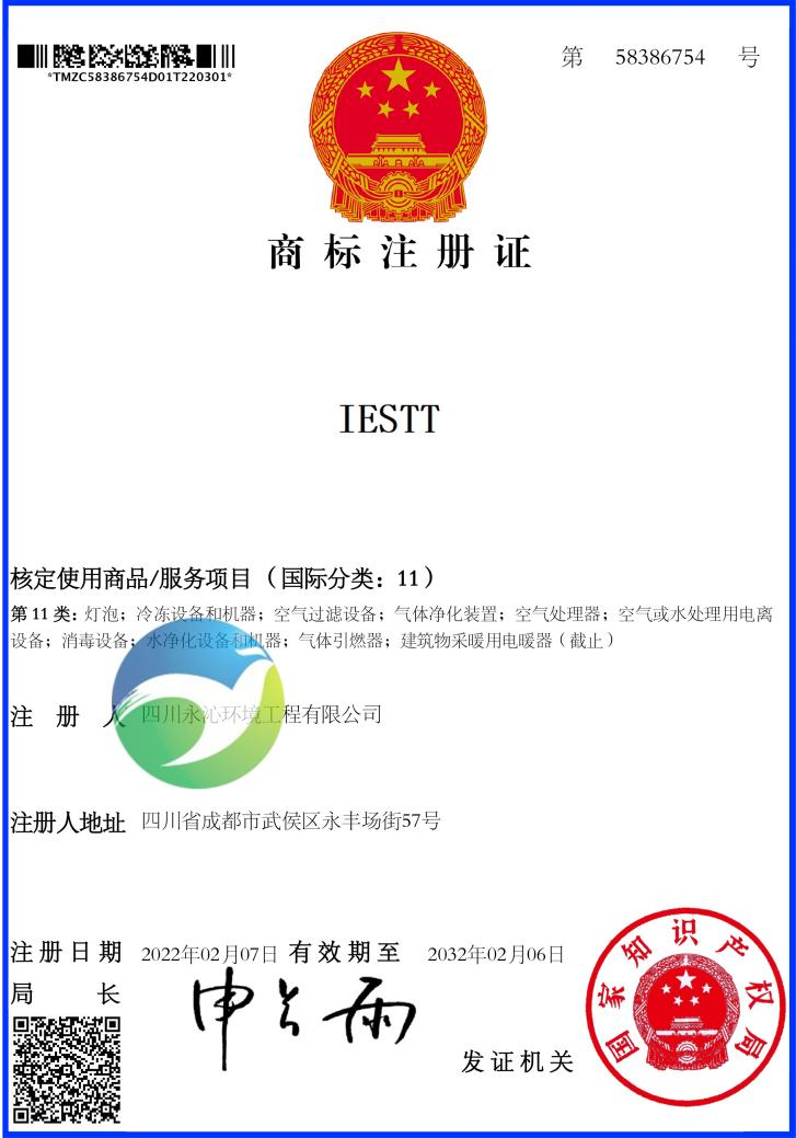 近日,公司IESTT技术获得两项商标注册证书。基于IESTT技术研发制造的智能高效稳定医疗一体化污水处理设备,可满足不同类型医疗机构的污水处理需求。该项技术收录于水污染攻坚战一书。