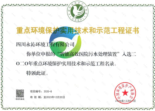中国环境保护产业协会发布“2020年重点环境保护实用技术及示范工程名录”,我司“智能高效医院污水处理装置”凭借技术先进、控制智能、杀毒高效等优点,获得评审专家的高度认可,荣获“重点环境保护实用技术和示范工程” 。这是公司技术装备第二次入选重点环境保护实用技术和示范工程。亦是2020年度四川省唯一一家入选重点环境保护实用技术的企业。