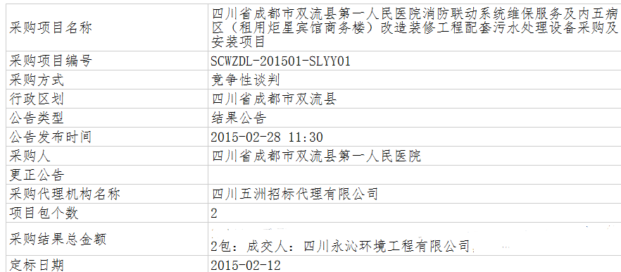 公司中标双流县第一人民医院污水处理工程,工程处理规模300方污水。