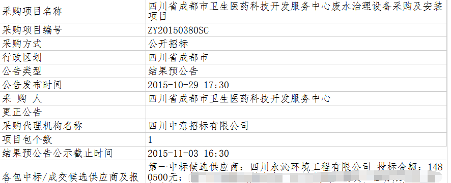 日前,公司中标成都市卫生医药科技开发服务中心废水治理设备采购及安装项目,这将是我公司在医疗废水处理项目方面的又一成功案例。