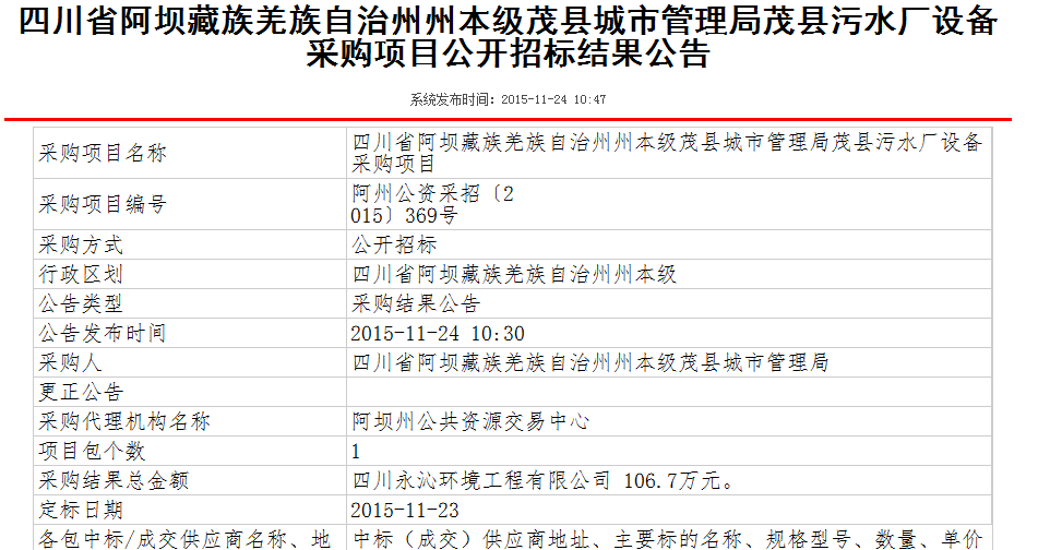 日前,公司中标阿坝州茂县污水厂技改项目,将为该厂提供紫外线消毒设备,转盘滤池及在线监测设备。