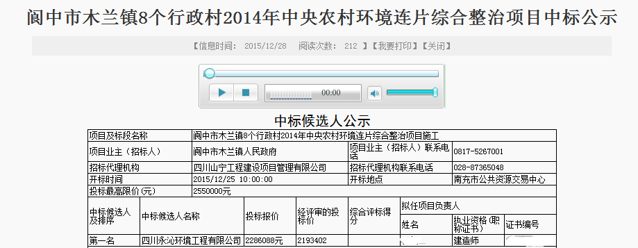 日前,公司中标阆中市木兰镇8个行政村2014年中央农村环境连片综合整治项目。