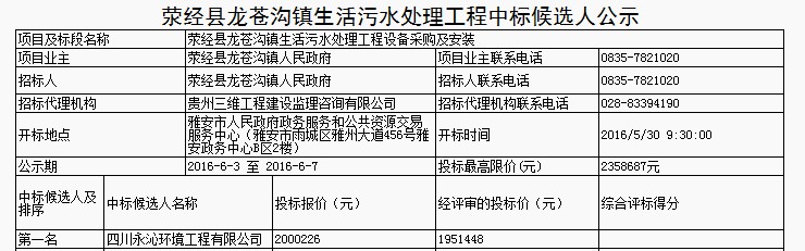 日前,公司成功中标荥经县龙苍沟镇生活污水处理工程。公司一直致力于城镇污水处理、农村污水处理,此项目将继续提升公司的综合实力。