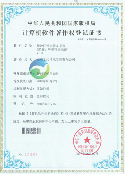 日前,公司喜获计算机软件著作权等级证书—智能环保云管家系统(简称:环保管家系统)V1.0,登记号:2016SR237716。