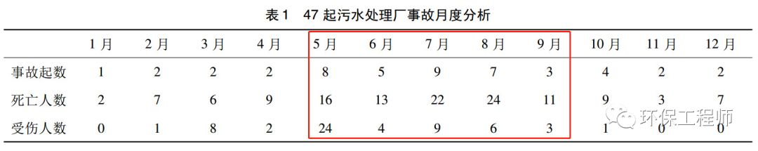 有学者通过总结10年来发生的47起具有典型代表意义的污水处理厂事故,发现每年的5~9月是污水处理事故高发期。所以在这段时期,每个污水处理人员都必须格外提高警惕。