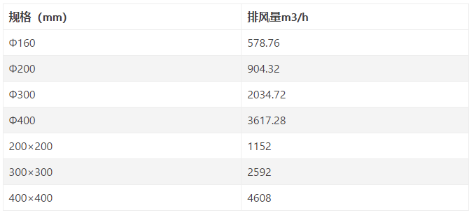 计算公式:G=πR²×V×3600×μ其中,G:排风量,R:罩口半径,V:罩口风速,μ:安全系数(1.1~1.2)