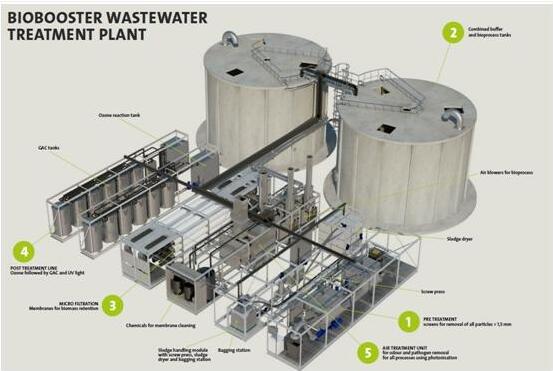 格兰富公司作为项目所有人,提供技术支持。处理厂的设计是基于膜生物反应系统(MBRsystem,Membrane Biological Reactor),由生物处理成和旋转陶瓷超滤膜组成。