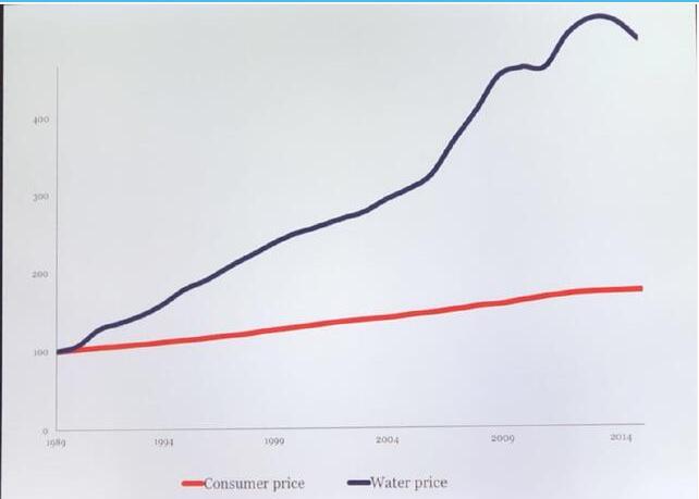 丹麦目前平均水价约为46.41丹麦克朗/立方米(约合50元/吨),在1989-2014年期间,丹麦的水价上涨了三倍,而物价涨幅变动不大。